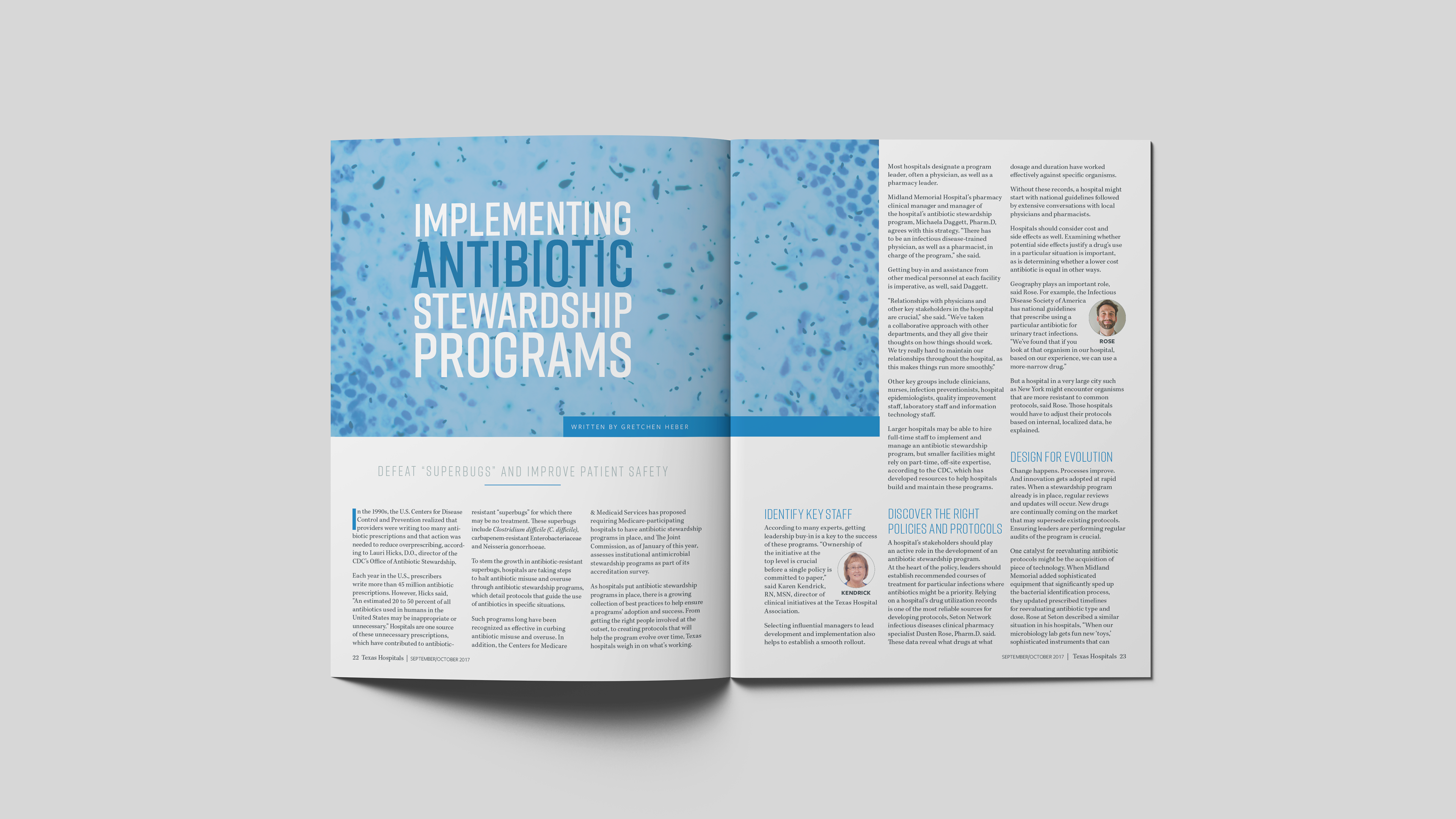For more than 77 years, Texas Hospitals was the official magazine of THA. Published six times per year, the magazine focused on news, information, and thought leadership related to Texas hospitals and priority issues impacting health care. I provided art direction and design for the magazine's four features, six regular columns, an infographic, and additional special sections. (2017-2022)